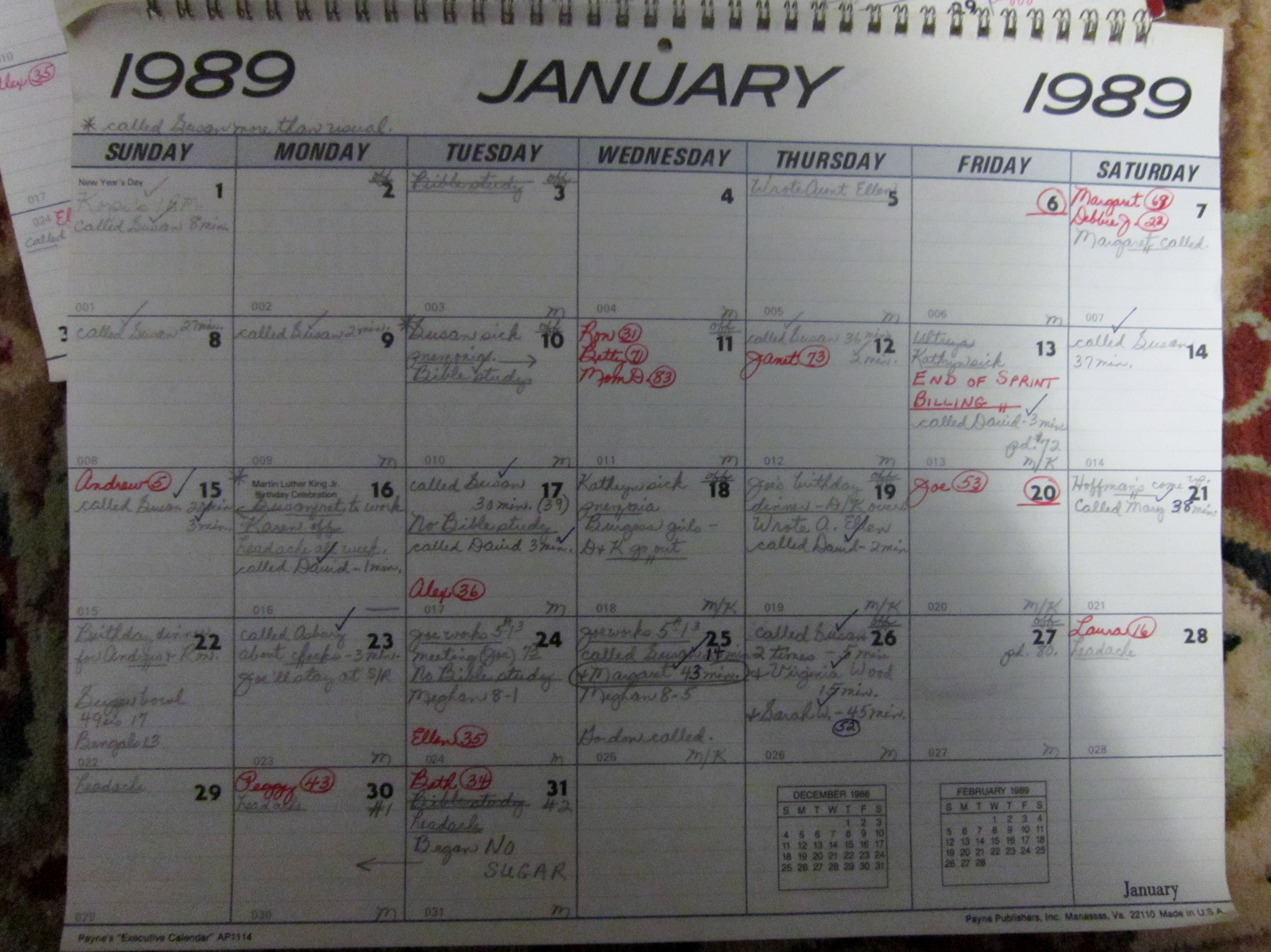 - Her calendars! What a treasure trove these are! I have them dating back to 1962! I can tell not just birthdays, anniversaries, graduations, deaths and main events like that, but mom also wrote down when they visited people, where they ate (even what was spent), when the grandchildren spent the night, what field trips my brother and I went on and so much more. These are like her diaries and the story of my childhood recorded in excellent details!