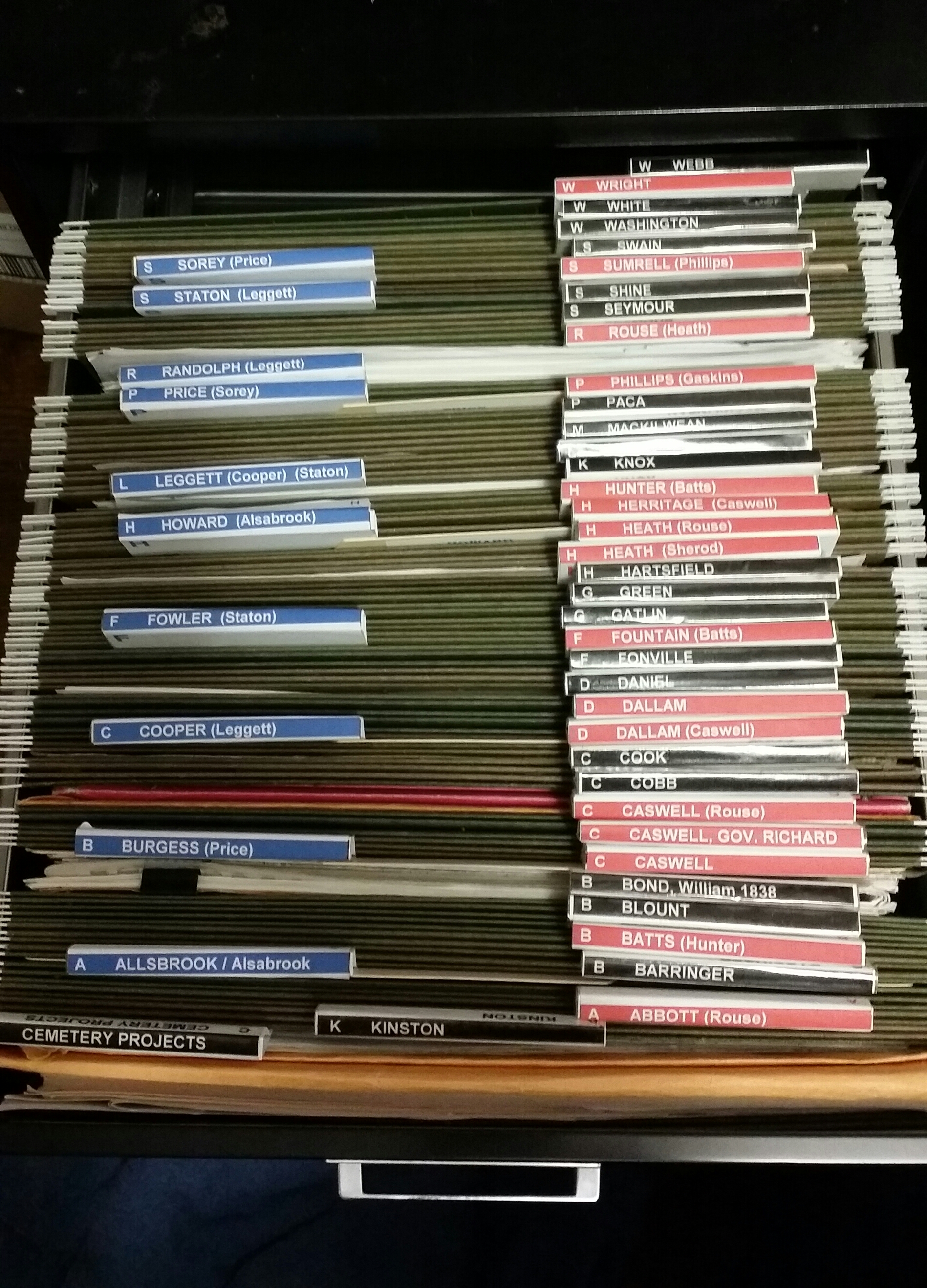 - Create and Color Code Surname Folders, within each of the above main folders so that all Male folders are Blue and Female are Red within the folders. I find the color makes it quicker to find the right folder.