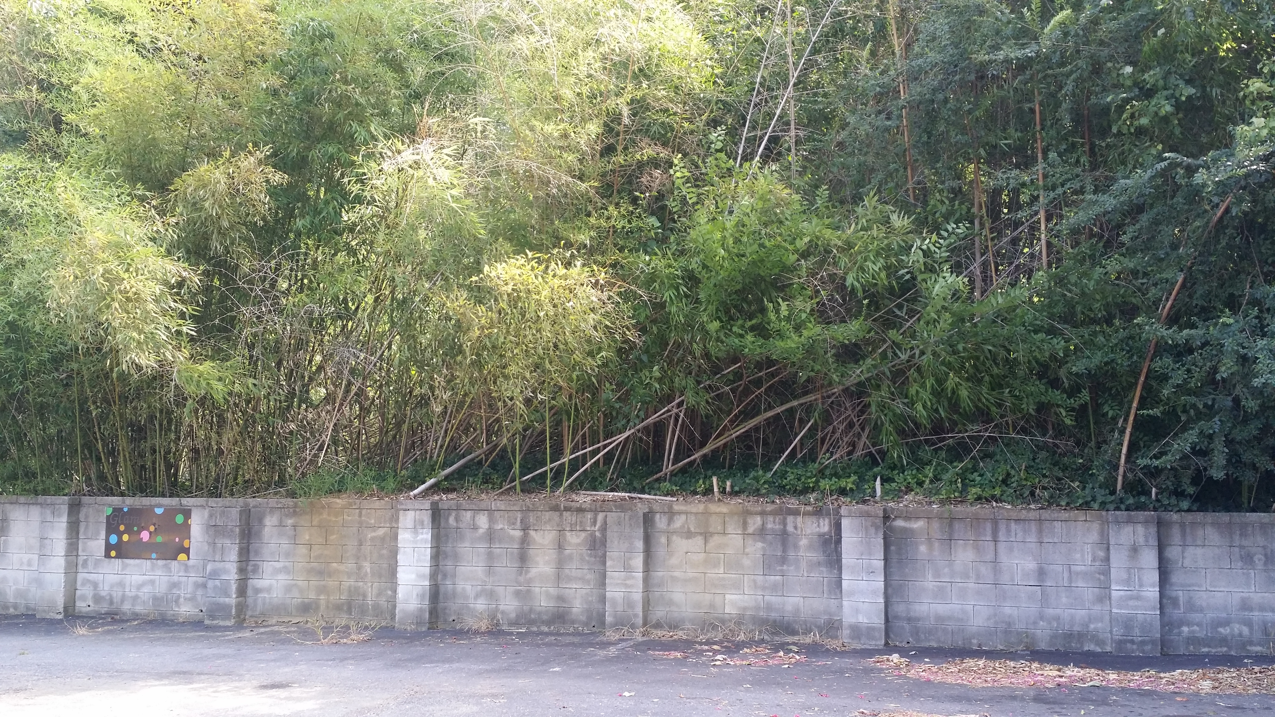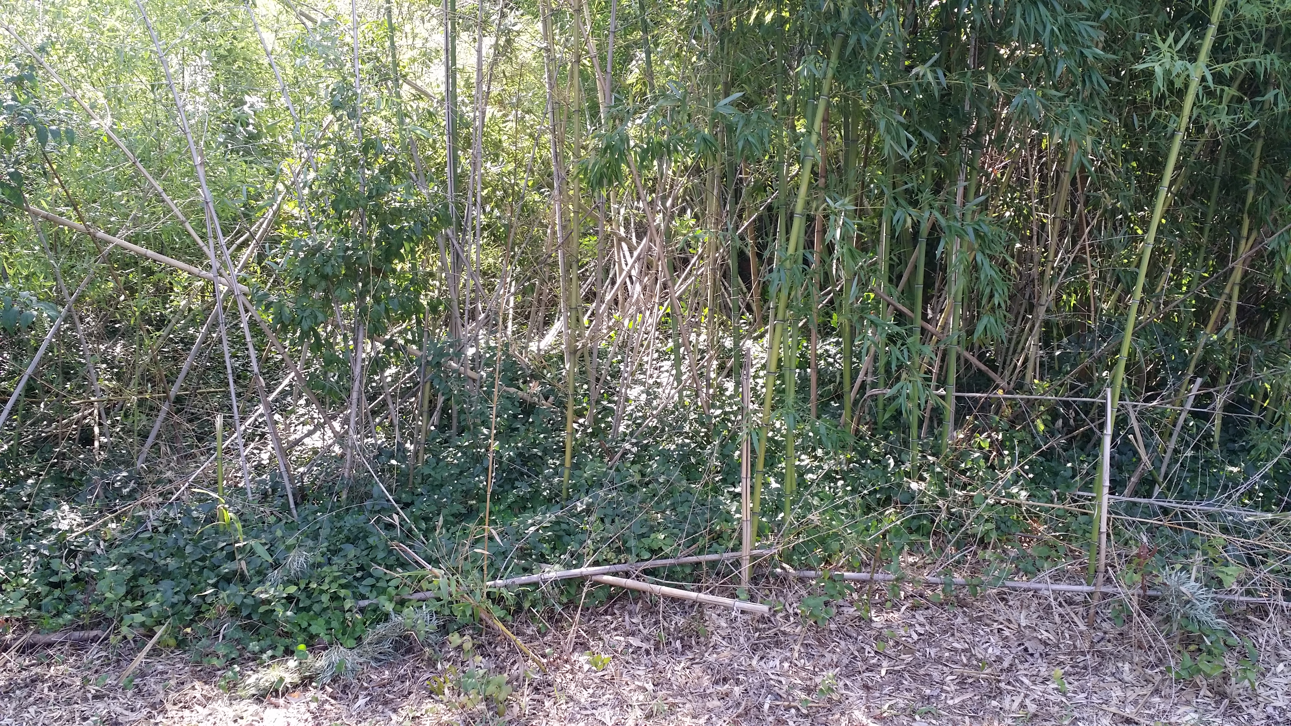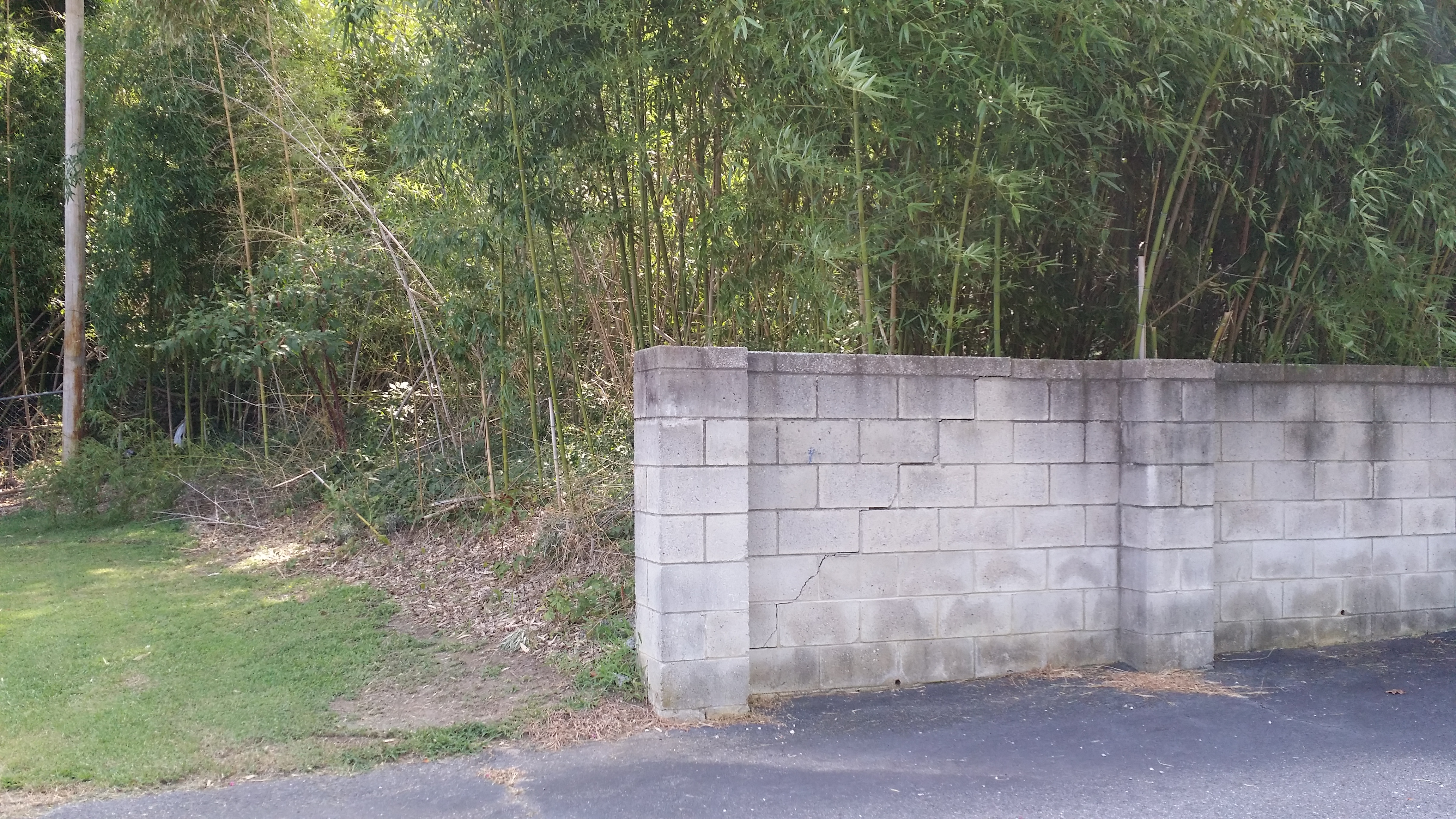 through this wall of bamboo and other saplings lay what remains of the cemetery, including the brick wall and memorial of the Washington family.